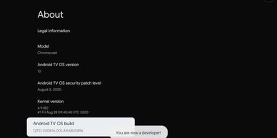 Click Android TV OS Build seven (7) times. This will enable "Developer Mode". (This allows you to download from unknown sources.)